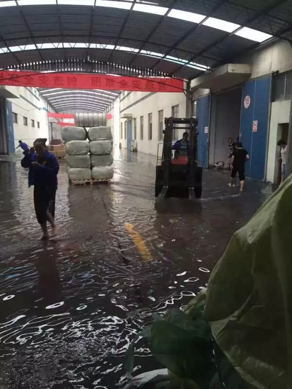 水早已超出腳踝,大家的鞋子、襪子、褲子全濕了,可是沒有一個人在意,甚至很多人脫了鞋子光腳踩在水里面,其中就包括我們的副總肖文忠,他本身還在感冒,可是他還是以公司為第一位,帶著大家積極搶救貨物。