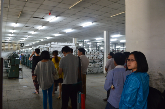 同,生產(chǎn)的紗線不同,用到的機器也是不同的。大家認真的聽著,并不時的提出自己的見解。