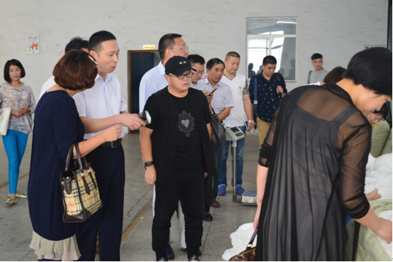 ,這是非常重要的一步。企業(yè)家們邊仔細聽講,邊好奇的用手觸摸而工人們依舊認真的工作